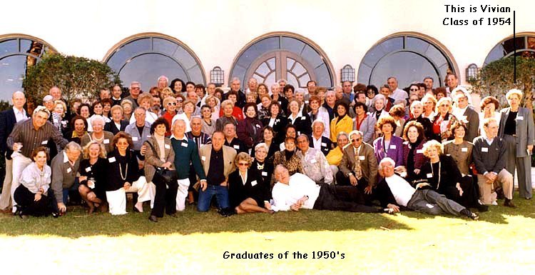 Thanks to Vivian Mintz Karow, Class of 1954, for sending this wonderful photo of the graduates of the 1950's taken in 1997 at their Boca Raton reunion. Vivian wants to know where all of you 1950's grads are and why you haven't registered with this site? Click on the photo to see it in it's larger format.