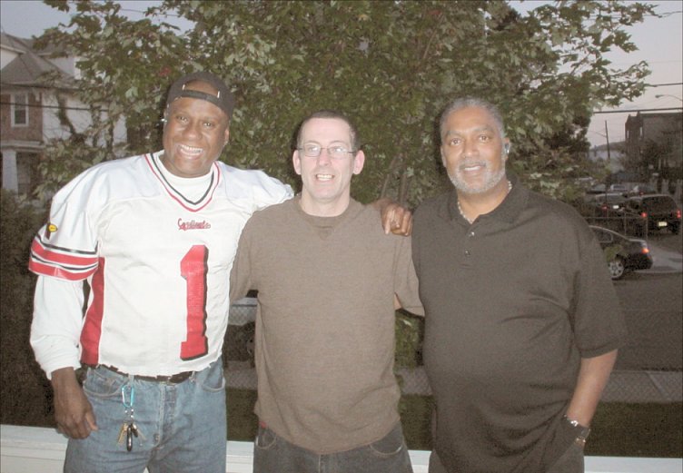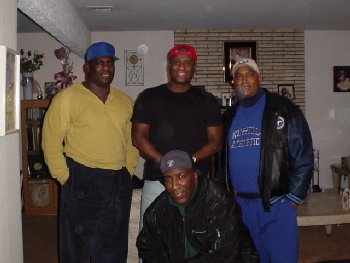 Smith, Rick - rockawaybreeze@yahoo.com - Far Rockaway, NY . Just wanted to let you know that I've finally gotten in touch with Milton Cornwall. Everything is well with him and we got together with a couple of FarRock grads. Thanks to Roger Baumgarten, my old classmate since 1st grade. Also to let the people know is that I've had my third kidney transplant on October of 2002; everything is well and finally back in the gym. In the picture I've sent you have from left to right. Milton Cornwall, Frank Henderson, Me-Rick Smith from the 78' class and at the bottom is my older brother Greg Carter class of 72'. You sure can use the photo that I sent to you earlier. You can also list Greg and Milton under my e-mail address. I know that Frank is listed but I don't know if it's current. I'll be talking to Milton over the weekend. As a matter of fact; we might be getting together again sunday to watch the Jet game. So I'll try to get Franks e-mail address and see if Milton and Greg are going to be soon. Have a Happy New Year Everyone! Click on the photo to see it in its larger size.