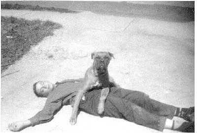 A photo of Alan Weinstock and the family pet "Flippy" taken in 1957