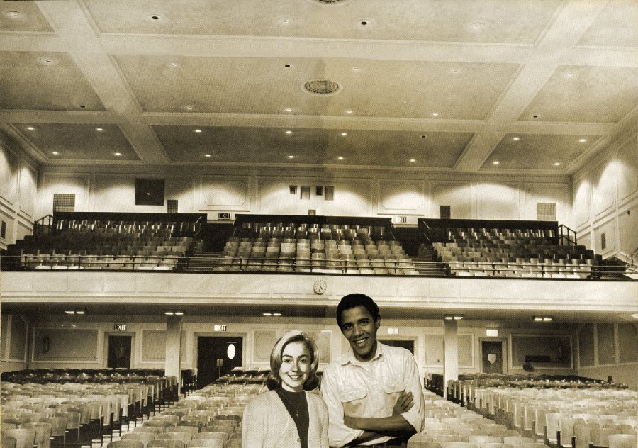Boy, talk about being in the right place at the right time......thanks to Marty Nislick for capturing this rare photo of Hillary and Barack waiting to debate issues related to Far Rockaway High School at the Young Democrats Forum.