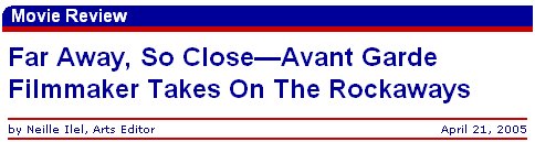 Street’s next project is filming a series of cities, in the tradition of Russian realist filmmaker Dziga Vertov. Street will be profiled on Channel 13’s “New York Voices” on Friday, April 22nd at 9:30 p.m. and his film “Rockaway” will screen at the Tribeca Film Festival on Friday,April 22nd at 7:15 p.m., on Sunday, April 24th at 6:15 p.m. and on Friday, April 29th at 4:00 p.m. Tickets are $10 and available at the door. See www.tribecafilmfestival.org for more information.